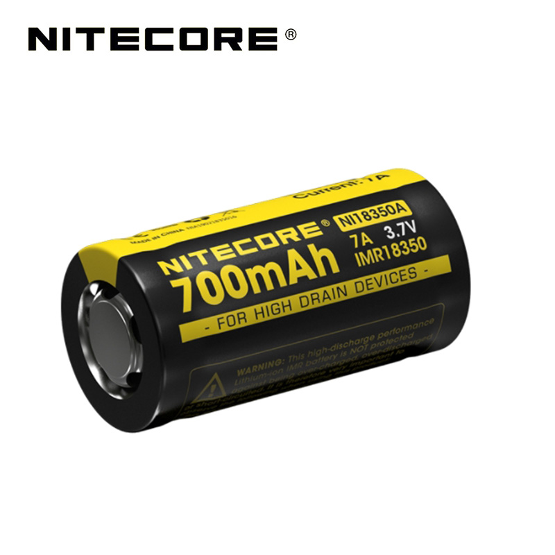 Značkový Li-Ion IMR akumulátor Nitecore 18350 700mAh 3.7V s vysokým vybíjecím proudem (až 7A), konstruovaný pro nejvýkonnější svítilny.