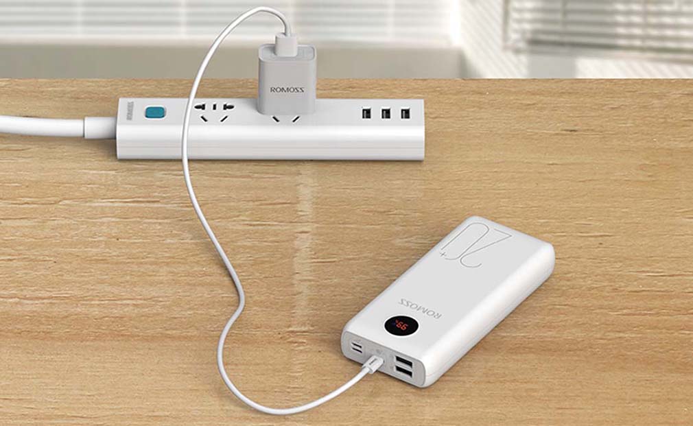 Powerbanka od Romoss má digitální LED displej, který informuje o úrovni nabití. To však není vše. Inovativní technologie umožňuje přepínat mezi režimy a zobrazuje informace o napětí a rychlosti nabíjení. Kromě toho se na obrazovce objeví malá ikona, když je nabíječka v režimu rychlého nabíjení.