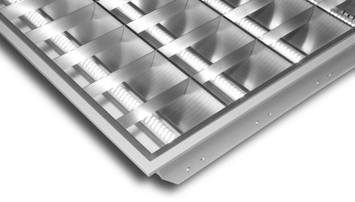 Mřížkované hliníkové těleso MIVVY určené pro 4ks LED trubice T8 60cm