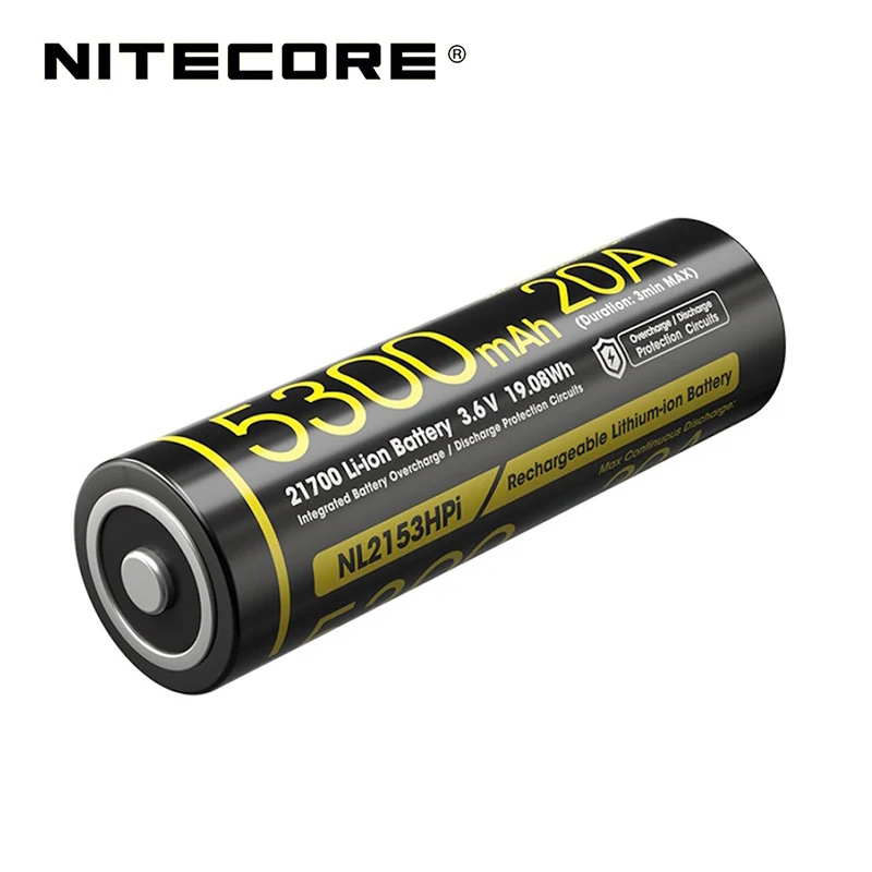 Značkový akumulátor Nitecore 21700 5300mAh NL2153HPi (s ochranným obvodem) pro výkonné svítilny vžadující proudový odběr až 20A.