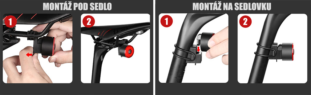 - příslušenství pro montáž pod sedlo i na sedlovku