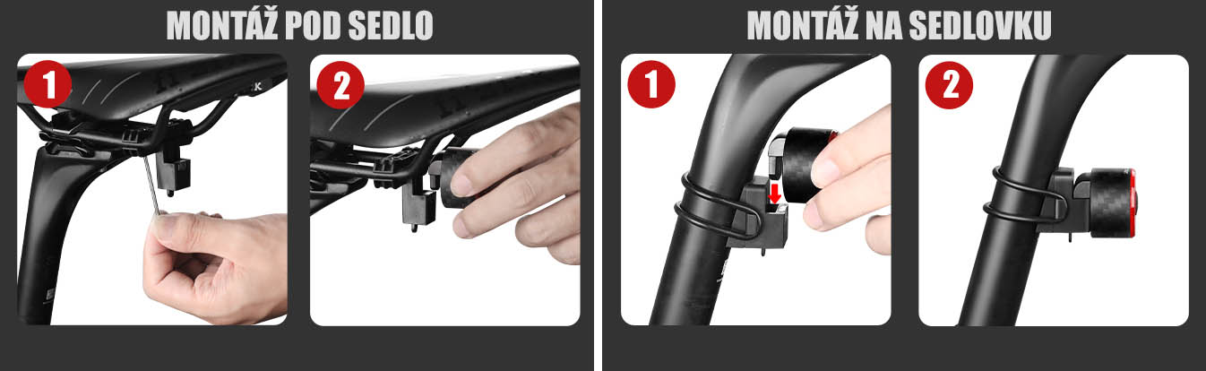 - příslušenství pro montáž pod sedlo i na sedlovku