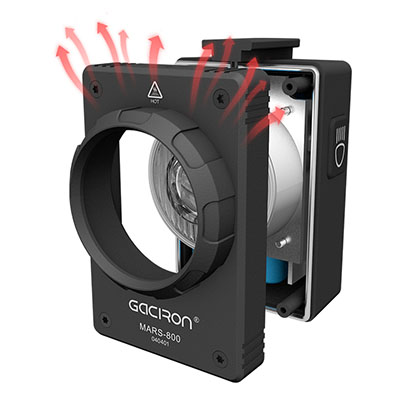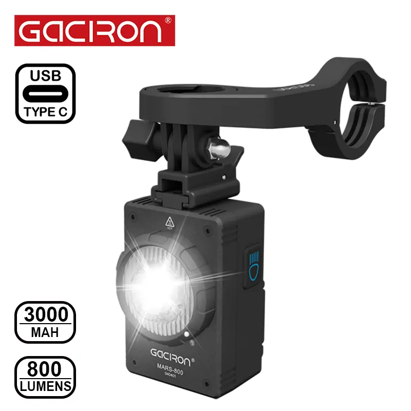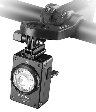Gaciron Mars disponuje ostře oříznutým kuželem světla proti oslnění, výkonem až 800 lumen, nabíjením přes USB-C konektor, montáží dolů na předsazený držák, ovládáním na světle nebo dálkovým ovladačem. Cyklosvítilna Mars 800 je vhodná pro večerní i denní svícení a díky neoslňujícímu reflektoru jako skvělé univerzální světlo zejména pro cyklostezky, městský a silniční provoz.
