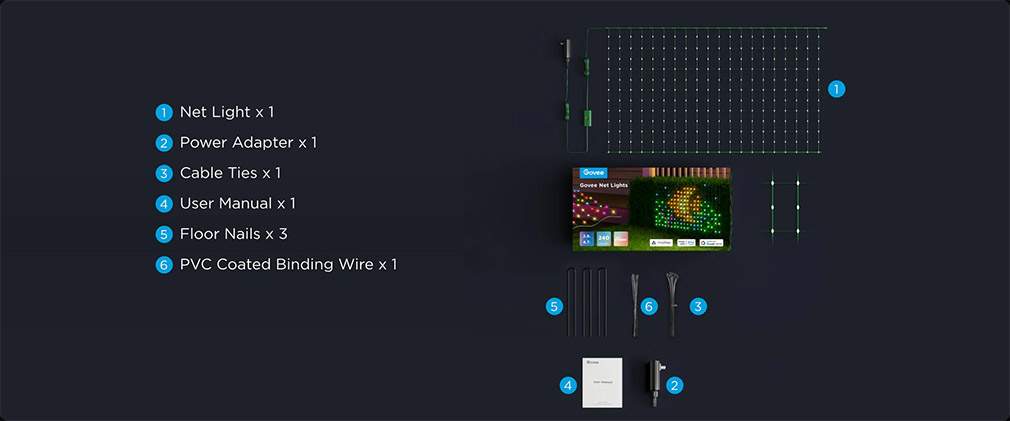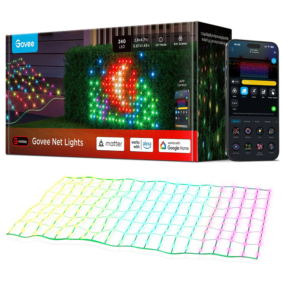 Ovládání je komfortní a flexibilní díky mobilní aplikaci Govee Home, ve které můžete jednoduše měnit barvy, nastavovat různé světelné scény, měnit jas nebo aktivovat časovač. Síť podporuje hlasové asistenty jako Google Assistant a Amazon Alexa, a díky protokolu Matter bezproblémově zapadá do chytré domácnosti, kde ji ovládáte společně s dalšími zařízeními. Kromě přednastavených světelných motivů můžete využít i DIY režim pro vlastní kreativní světlé efekty nebo synchronizovat světla s hudbou pomocí vestavěného mikrofonu pro dynamické osvětlení ve stylu rytmu.