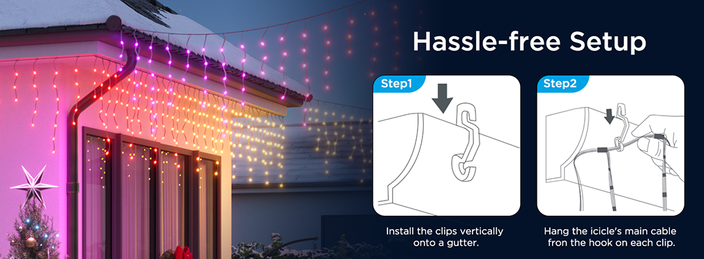 - Chytré ovládání a synchronizace s hudbou: Světla lze snadno ovládat hlasem přes Matter, Google Assistant nebo Alexa. Díky hudebním režimům se světelné efekty synchronizují s vaší oblíbenou hudbou a vytvářejí dokonalou sváteční atmosféru.