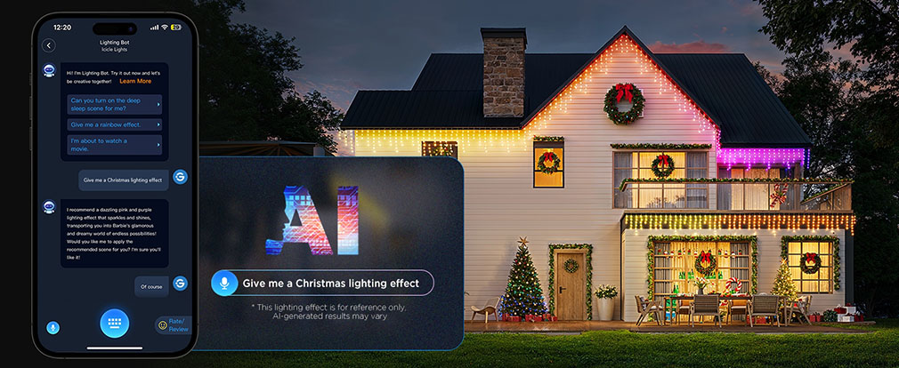 - AI světelné show: Kromě přednastavených režimů a DIY přizpůsobení nabízí tento řetěz i AI-generované světelné efekty. S jediným příkazem vytvoříte perfektní atmosféru pro každou příležitost.