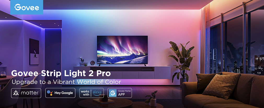 Govee LED Strip Light 2 Pro je chytrý LED pásek s pokročilou technologií RGBICWW, která kombinuje plnobarevné RGBIC diody s teplou a studenou bílou pro dosažení maximální flexibility a precizního světelného podání. Díky vlastnímu ovládacímu čipu G1151 zvládá velmi rychlé přepínání efektů a spolehlivou komunikaci se systémem domácí automatizace. Pásek obsahuje 60 LED diod na každý metr (celkem 300 na 5m), což zajišťuje syté barvy, vysoký jas a plynulé gradienty. Podpora standardu Matter umožňuje bezproblémové propojení s chytrou domácností, ať už používáte Google Assistant, Amazon Alexa, Apple Siri nebo jiné platformy.
