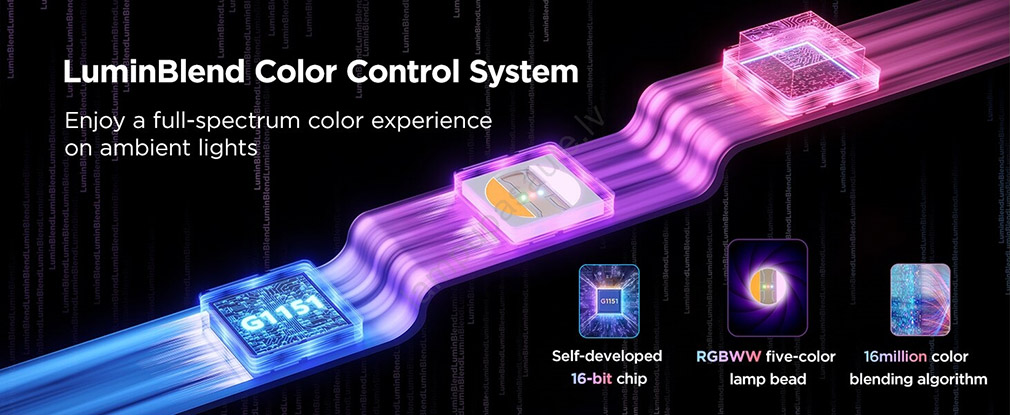 - RGBICWW technologie s 5v1 LED čipy – živé barvy a realistické podání bílé