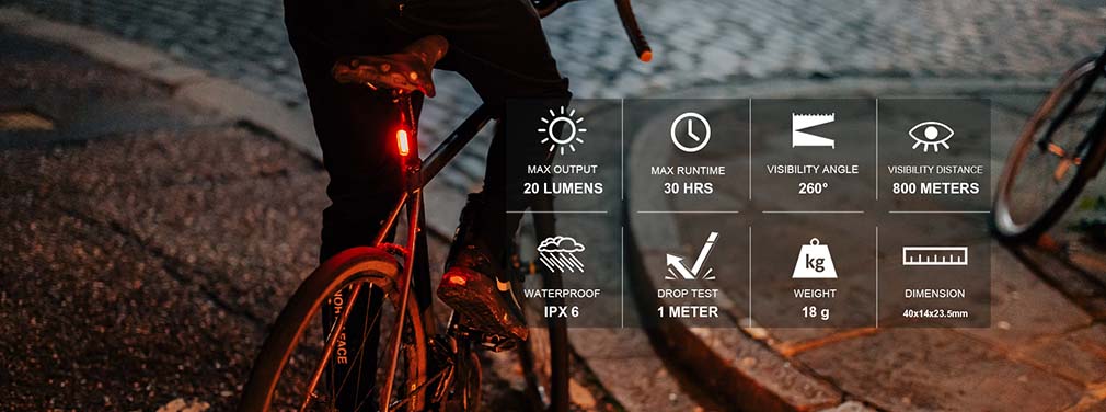 - LED o výkonu až 20 lumen, viditelnost až 800 metrů