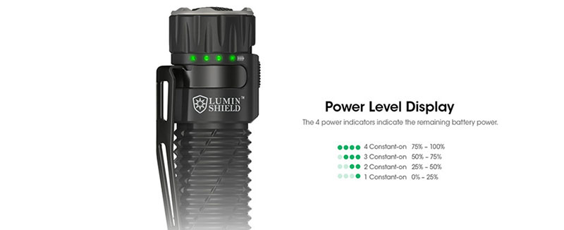 - Čtyři úrovně jasu a dva speciální režimy: LUMIN SHIELD™ a SEARCH