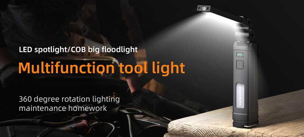 Multifunkční svítilna od Superfire se vám bude hodit v různých situacích. Využijete jej v dílně, kolem domu, v kempu atd. Má funkci otáčení o 360° a magnetickou základnu pro nabíjení. Díky odolné konstrukci a vysoce kvalitním materiálům dobře funguje v náročných podmínkách. Navíc funguje i jako powerbanka. Hlavní reflektor skrývá jak klasické bílé, tak i červené světlo pro signální a další účely. V horní části je také další reflektor s delším bodovým dosvitem.