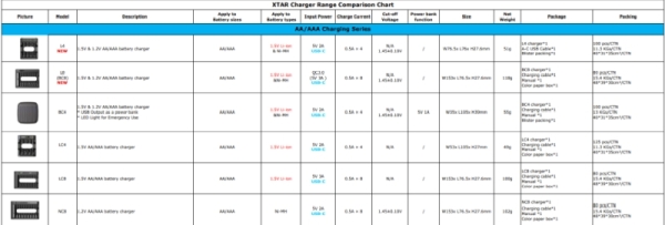 Velké srovnání funkcí nabíječek Xtar naleznete v pdf tabulce ke stažení: